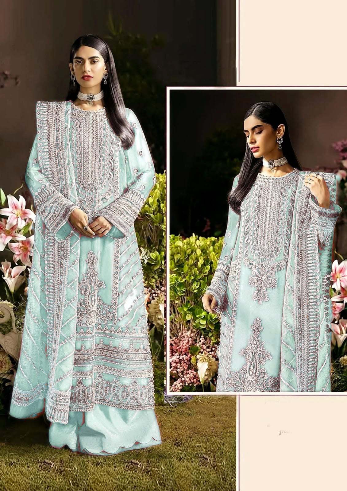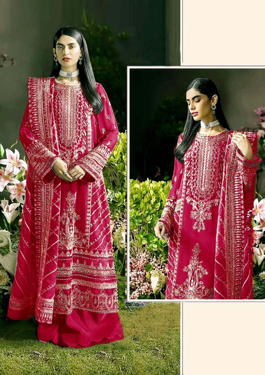 Dupatta: Fully embroidered with matching patterns and scalloped edges, giving a regal look.