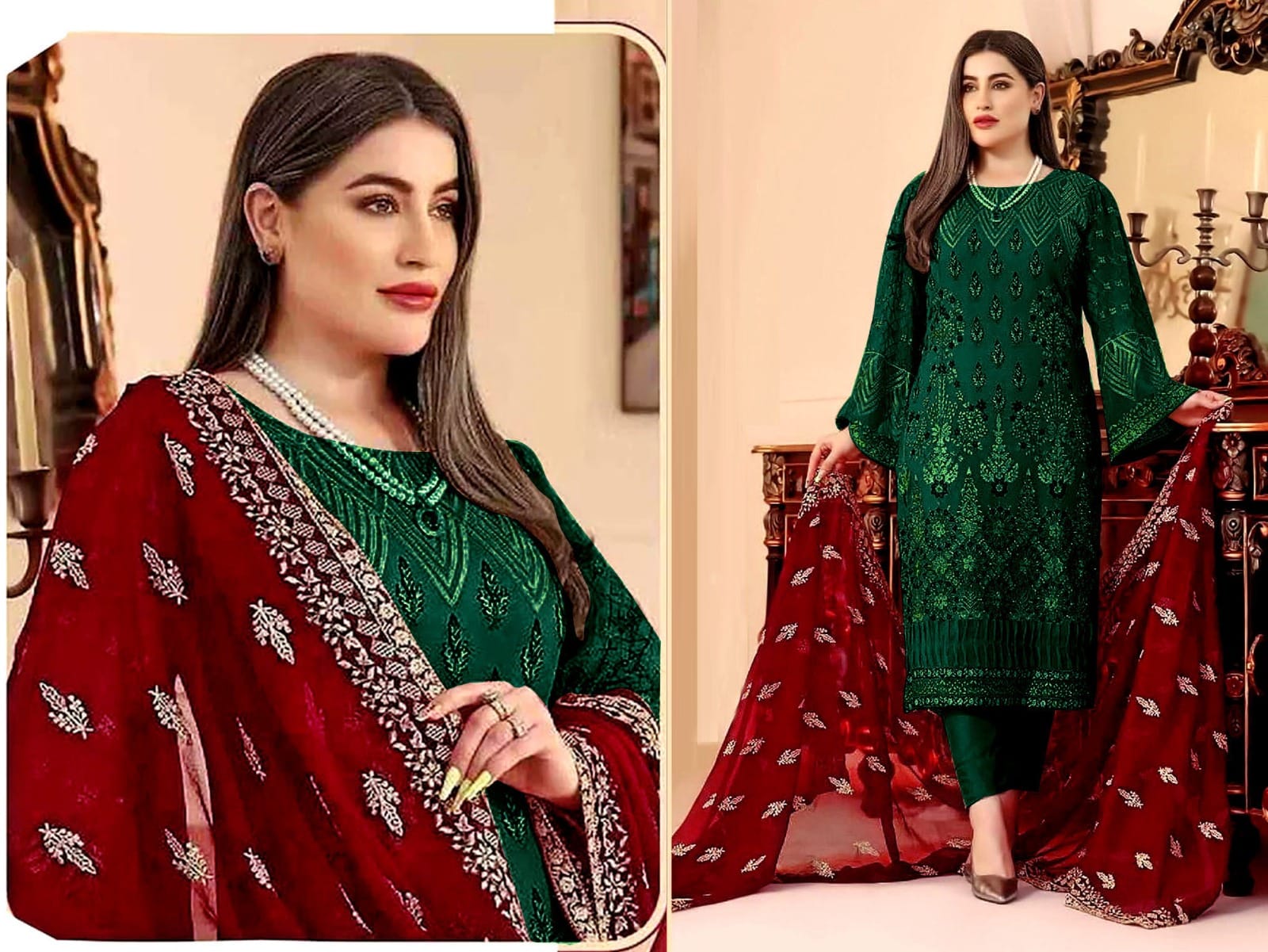 This outfit is a gorgeous embroidered salwar Kameez that beautifully captures the essence of traditional South Asian elegance with a bold and regal color combination. It’s perfect for festive gatherings, weddings, or cultural celebrations where you want to make a statement with grace and sophistication.