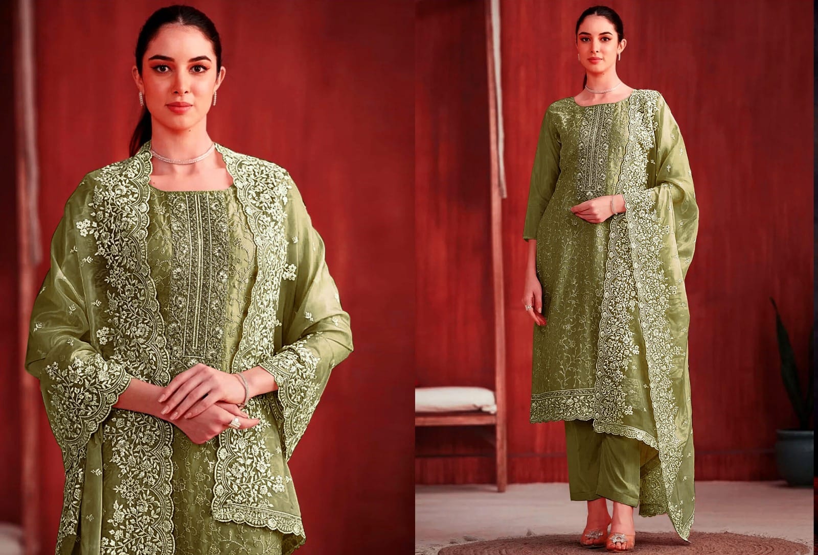 This outfit is a standard embroidered three-piece that perfectly blends traditional grace with modern simplicity. It radiates freshness, sophistication, and a calm earthy charm — ideal for daytime festive events, Eid gatherings, or semi-formal occasions.