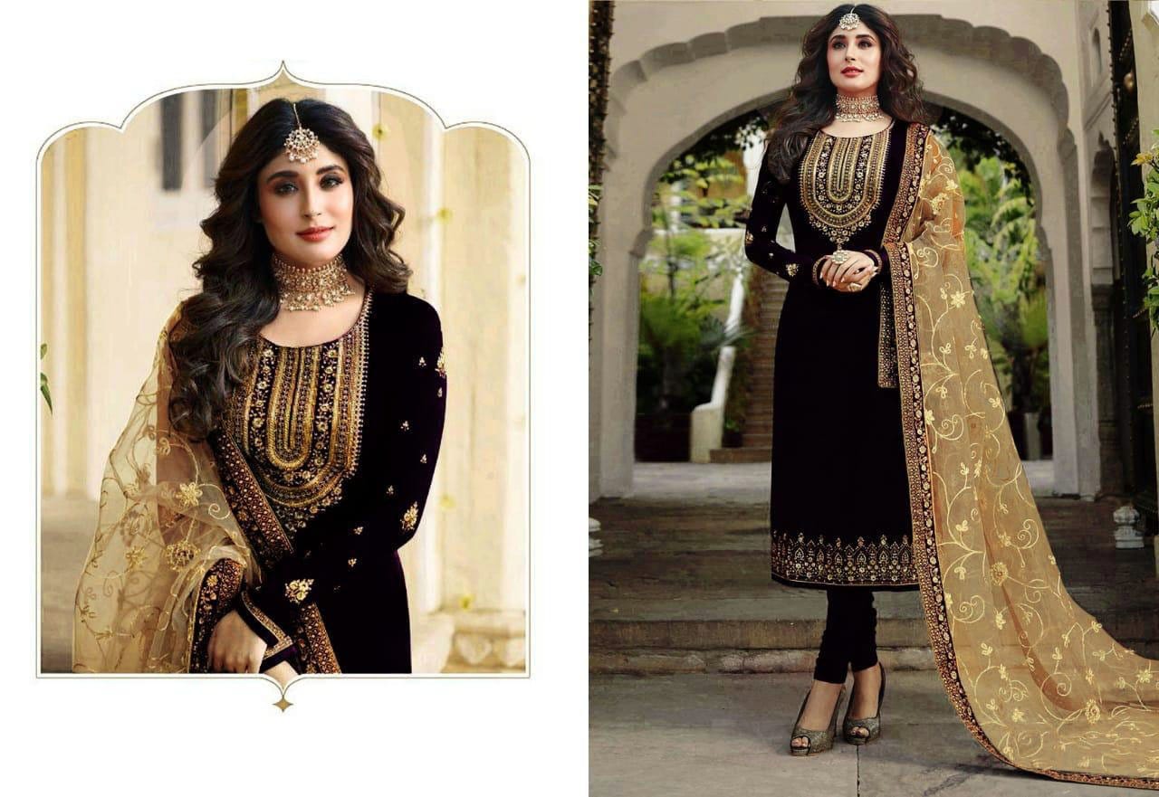 A straight-cut kameez with churidar pants and a heavily embroidered dupatta, offering a graceful and royal silhouette.